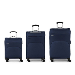 sada 3 kufrů (kabinový, střední a velký), povrch PES textilie, rozšiřitelný objem u kufrů M a L, TSA kombinační číselný zámek zipu, 4 dvojkolečka